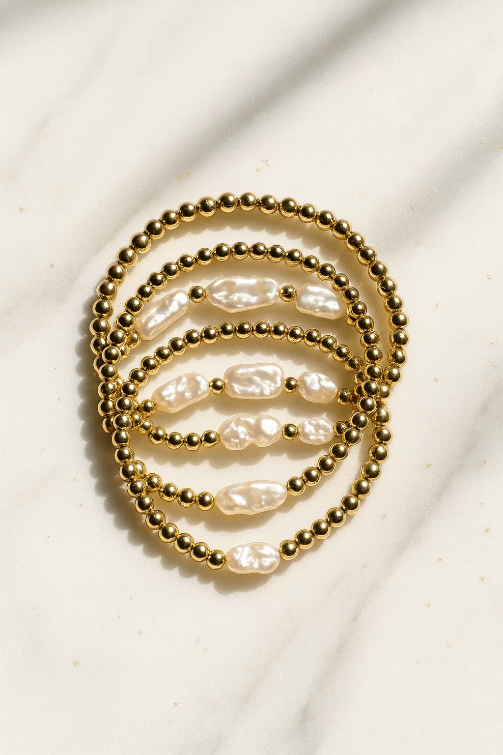 Atrask išskirtinį stiliaus akcentą – apyrankių rinkinį DIVYA, kuris spinduliuoja šiluma, elegancija ir moteriška energija. Rinkinyje dera prabangiai blizgantys aukso spalvos karoliukai ir švelniai spindintys perlo formos elementai, sukuriantys subtilų, tačiau ryškų įvaizdį.