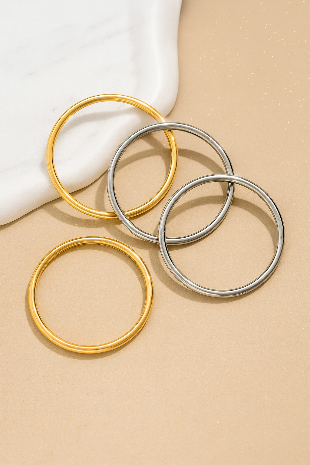 Komplekte: 4 apyrankės (2 aukso spalvos + 2 sidabro spalvos)
