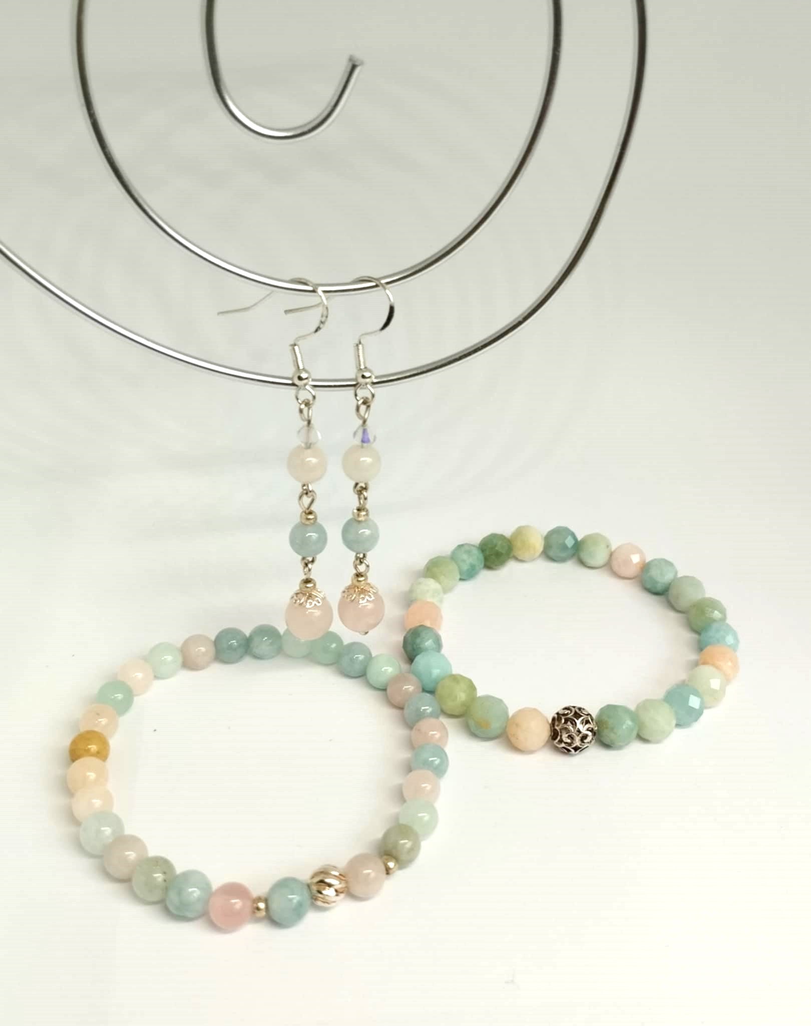 Rankų darbo berilų papuošalai – auskarai ir apyrankės.
