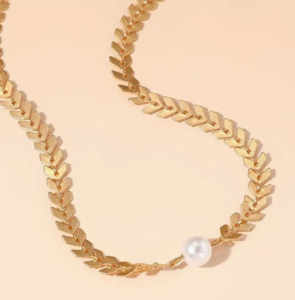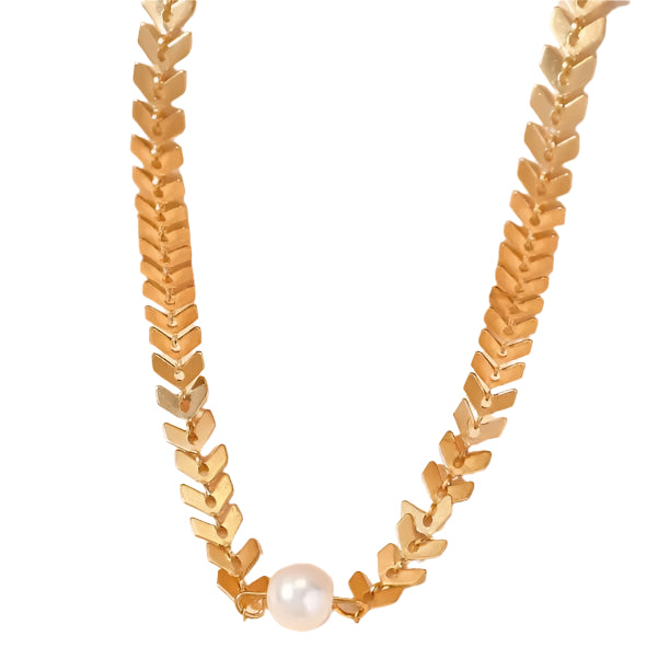 Išskirtinio dizaino, elegantiškas kaklo papuošalas, puikiai priglundantis prie kaklo – tai stilingas pasirinkimas tiek kasdienai, tiek ypatingoms progoms. Papuošalas pagamintas iš subtiliai blizgančių, lapelių formos grandelių, kurios elegantiškai supa centrinį akcentą – švelniai spindintį baltą perlą. Minimalistinis, tačiau prabangos dvelksmu alsuojantis dizainas pabrėžia kaklo linijas ir suteikia išskirtinumo kiekvienam įvaizdžiui. Puikiai dera tiek prie vakarinės suknelės, tiek prie klasikinio ar modernaus stiliaus.